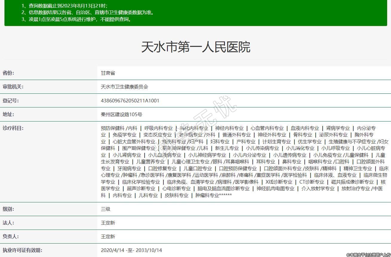 審批機(jī)關(guān):天水市衛(wèi)生健康委員會