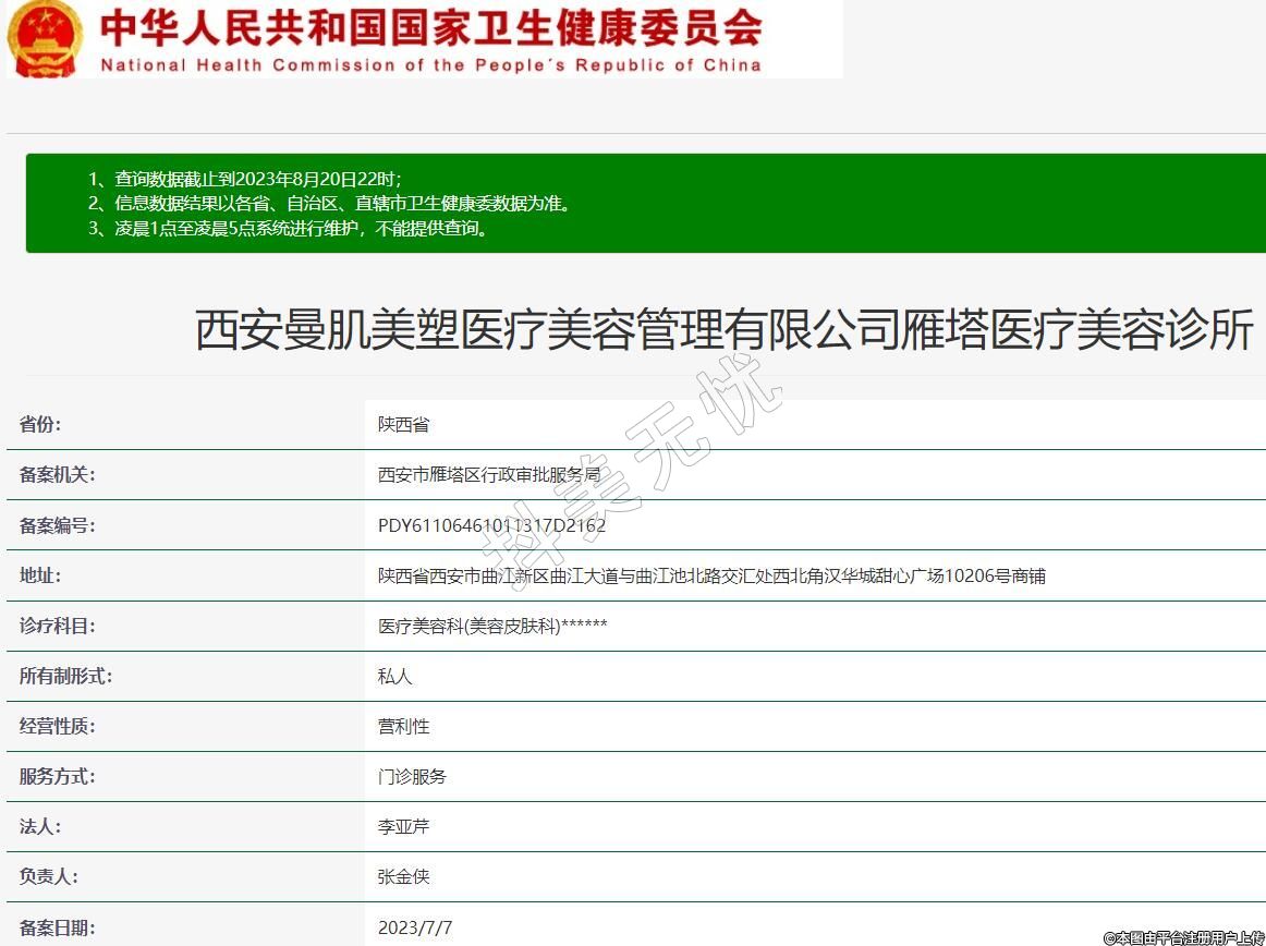 西安曼肌美塑醫(yī)療美容管理有限公司雁塔醫(yī)療美容診所