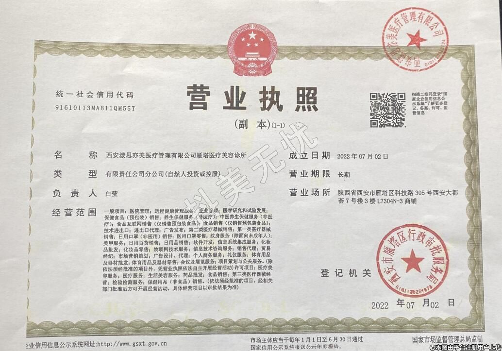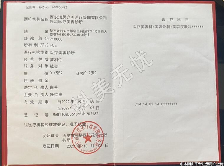 醫(yī)療機構名稱:西安漾思亦美醫(yī)療管理有限公司雁塔醫(yī)療美容診所
