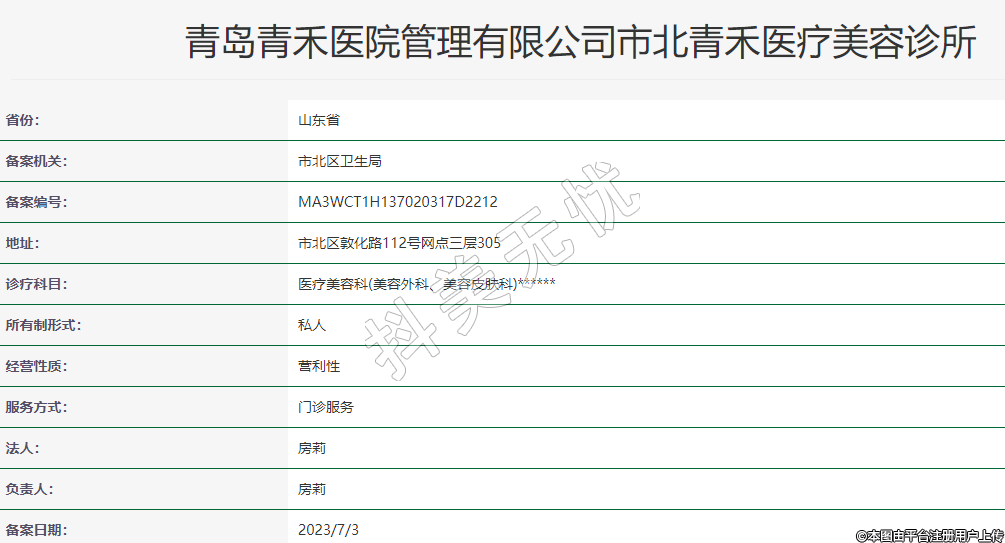 青島青禾醫(yī)院管理有限公司市北青禾醫(yī)療美容診所