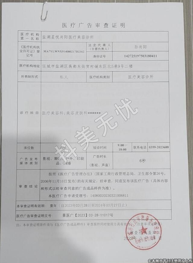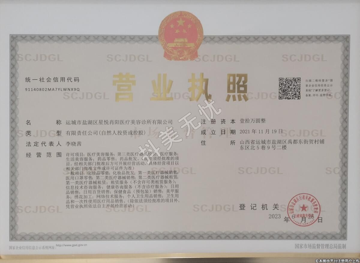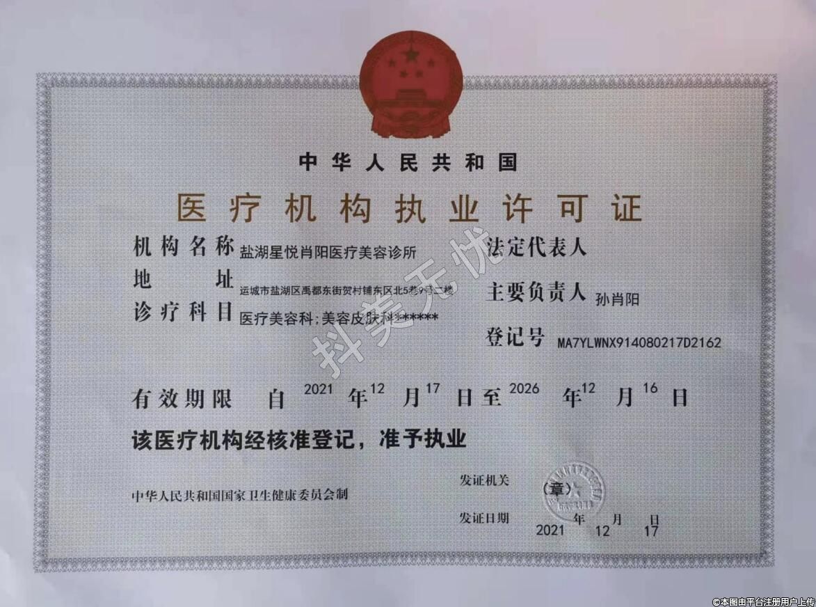 機構名稱:鹽湖星悅肖陽醫(yī)療美容診所