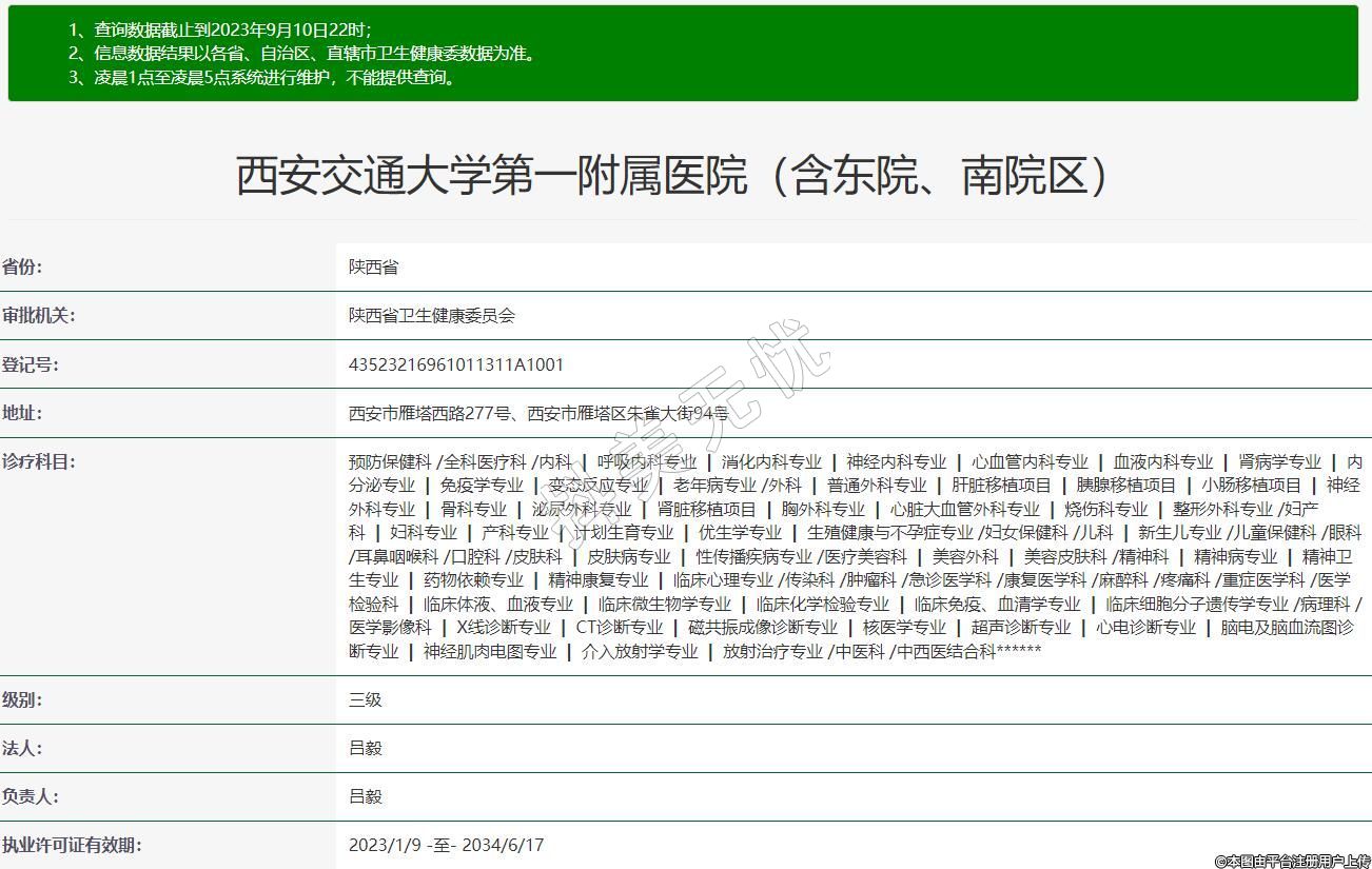 西安交通大學(xué)第一附屬醫(yī)院(含東院、南院區(qū))