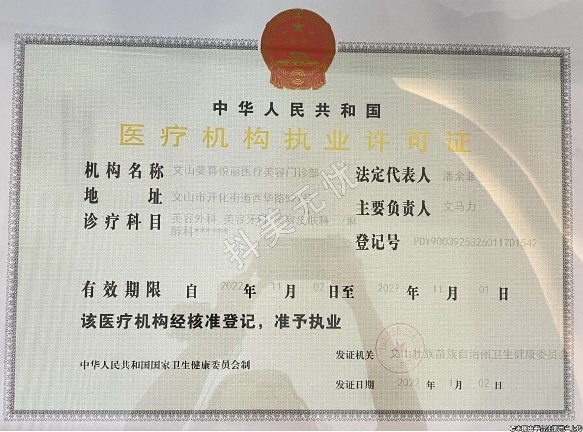 機構(gòu)名稱:文山斐暮悅麗醫(yī)療美容門診部