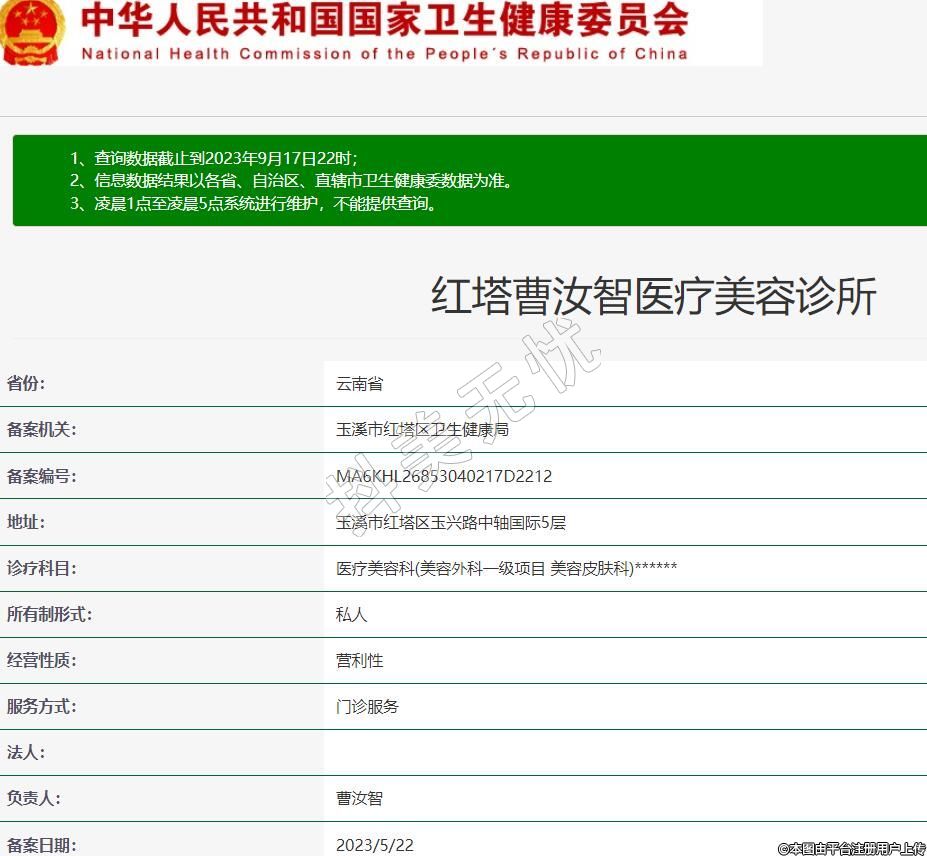 紅塔曹汝智醫(yī)療美容診所,診療科目:醫(yī)療美容科(美容外科一級(jí)項(xiàng)目 美容皮膚科)******