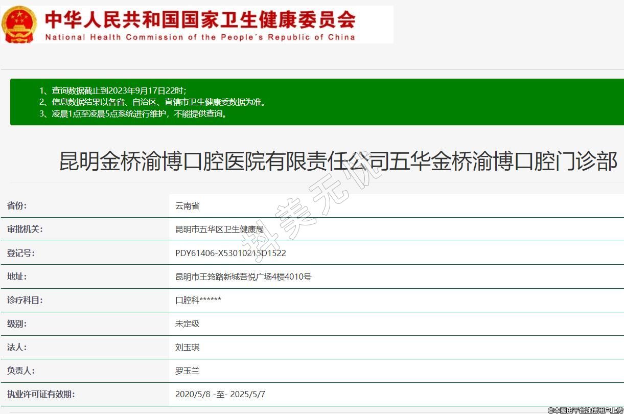 昆明金橋渝博口腔醫(yī)院有限責(zé)任公司五華金橋渝博口腔門(mén)診部