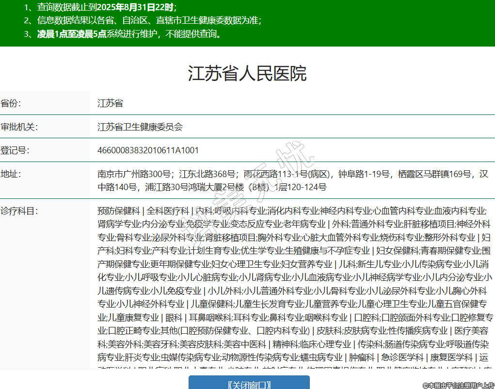 省份:江蘇省審批機(jī)關(guān):江蘇省衛(wèi)生健康委員會登記號:46600083832010611A1001地址:南京市廣州路300號;江東北路368號;雨花西路113-1號(病區(qū)),鐘阜路1-19號,棲霞區(qū)馬群鎮(zhèn)169號,漢中路140號,浦江路30號鴻瑞大廈2號樓(B樓)1層120-124號診療科目:預(yù)防保健科 | 全科醫(yī)療科 | 內(nèi)科;呼吸內(nèi)科專業(yè);消化內(nèi)科專業(yè);神經(jīng)內(nèi)科專業(yè);心血管內(nèi)科專業(yè);血液內(nèi)科專業(yè);腎病學(xué)專業(yè);內(nèi)分泌專業(yè);免疫學(xué)專業(yè);變態(tài)反應(yīng)專業(yè);老年病專業(yè) | 外科;普通外科專業(yè);肝臟移植項(xiàng)目;神經(jīng)外科專業(yè);骨科專業(yè);泌尿外科專業(yè);腎臟移植項(xiàng)目;胸外科專業(yè);心臟大血管外科專業(yè);燒傷科專業(yè);整形外科專業(yè) | 婦產(chǎn)科;婦科專業(yè);產(chǎn)科專業(yè);計(jì)劃生育專業(yè);優(yōu)生學(xué)專業(yè);生殖健康與不孕癥專業(yè) | 婦女保健科;青春期保健專業(yè);圍產(chǎn)期保健專業(yè);更年期保健專業(yè);婦女心理衛(wèi)生專業(yè);婦女營養(yǎng)專業(yè) | 兒科;新生兒專業(yè);小兒傳染病專業(yè);小兒消化專業(yè);小兒呼吸專業(yè);小兒心臟病專業(yè);小兒腎病專業(yè);小兒血液病專業(yè);小兒神經(jīng)病學(xué)專業(yè);小兒內(nèi)分泌專業(yè);小兒遺傳病專業(yè);小兒免疫專業(yè) | 小兒外科;小兒普通外科專業(yè);小兒骨科專業(yè);小兒泌尿外科專業(yè);小兒胸心外科專業(yè);小兒神經(jīng)外科專業(yè) | 兒童保健科;兒童生長發(fā)育專業(yè);兒童營養(yǎng)專業(yè);兒童心理衛(wèi)生專業(yè);兒童五官保健專業(yè);兒童康復(fù)專業(yè) | 眼科 | 耳鼻咽喉科;耳科專業(yè);鼻科專業(yè);咽喉科專業(yè) | 口腔科;口腔頜面外科專業(yè);口腔修復(fù)專業(yè);口腔正畸專業(yè);其他(口腔預(yù)防保健專業(yè)、口腔內(nèi)科專業(yè)) | 皮膚科;皮膚病專業(yè);性傳播疾病專業(yè) | 醫(yī)療美容科;美容外科;美容牙科;美容皮膚科;美容中醫(yī)科 | 精神科;臨床心理專業(yè) | 傳染科;腸道傳染病專業(yè);呼吸道傳染病專業(yè);肝炎專業(yè);蟲媒傳染病專業(yè);動物源性傳染病專業(yè);蠕蟲病專業(yè) | 腫瘤科 | 急診醫(yī)學(xué)科 | 康復(fù)醫(yī)學(xué)科 | 運(yùn)動醫(yī)學(xué)科 | 職業(yè)病科;職業(yè)中毒專業(yè);塵肺專業(yè);放射病專業(yè);物理因素?fù)p傷專業(yè);職業(yè)健康監(jiān)護(hù)專業(yè) | 麻醉科 | 疼痛科 | 重癥醫(yī)學(xué)科 | 醫(yī)學(xué)檢驗(yàn)科;臨床體液、血液專業(yè);臨床微生物學(xué)專業(yè);臨床化學(xué)檢驗(yàn)專業(yè);臨床免疫、血清學(xué)專業(yè);臨床細(xì)胞分子遺傳學(xué)專業(yè) | 病理科 | 醫(yī)學(xué)影像科;X線診斷專業(yè);CT診斷專業(yè);磁共振成像診斷專業(yè);核醫(yī)學(xué)專業(yè);超聲診斷專業(yè);心電診斷專業(yè);腦電及腦血流圖診斷專業(yè);神經(jīng)肌肉電圖專業(yè);介入放射學(xué)專業(yè);放射治療專業(yè) | 中醫(yī)科;針灸科專業(yè);推拿科專業(yè)******級別:三級法定代表人:劉云主要負(fù)責(zé)人:劉云執(zhí)業(yè)許可證有效期:2019/12/06 -至- 2034/12/05 -