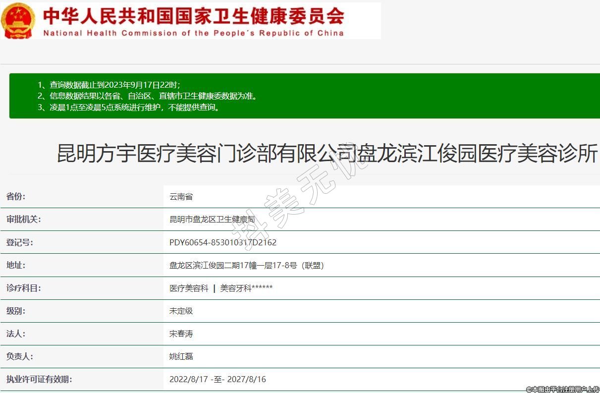 審批機關:昆明市盤龍區(qū)衛(wèi)生健康局