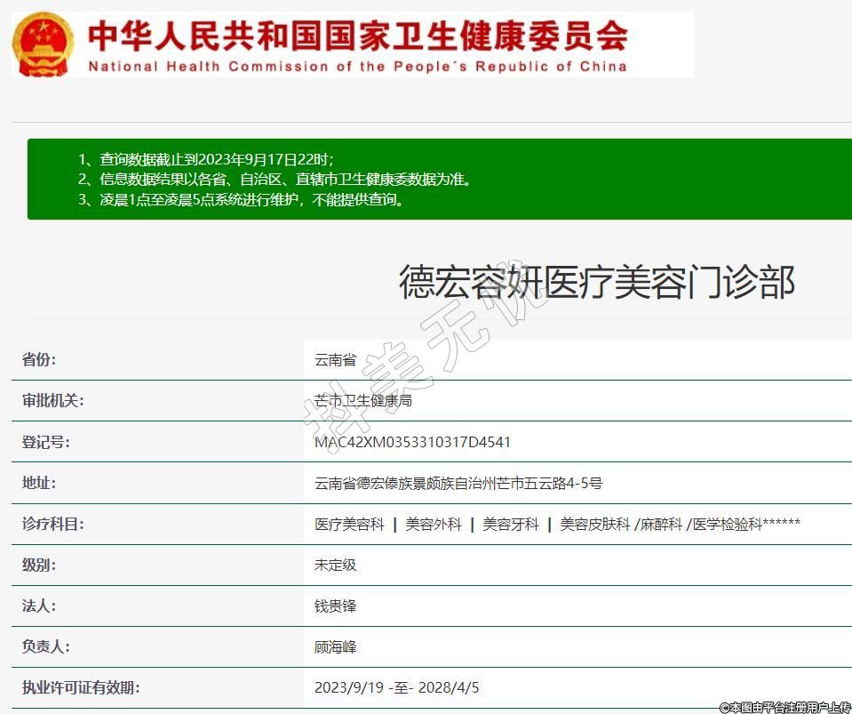 德宏容妍醫(yī)療美容門診部,診療科目:醫(yī)療美容科 | 美容外科 | 美容牙科 | 美容皮膚科 /麻醉科 /醫(yī)學(xué)檢驗科******