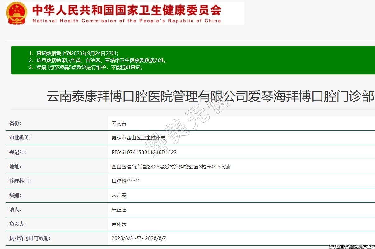 云南泰康拜博口腔醫(yī)院管理有限公司愛(ài)琴海拜博口腔門(mén)診部