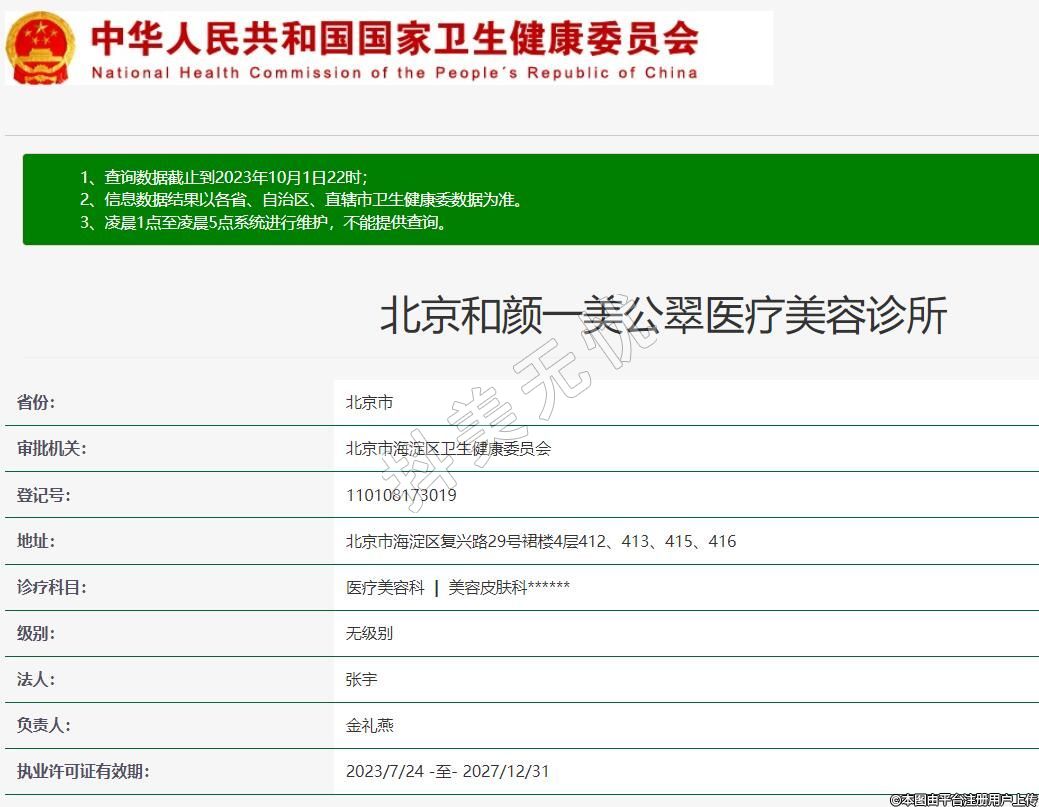 北京和顏一美公翠醫(yī)療美容診所,診療科目:醫(yī)療美容科 | 美容皮膚科******