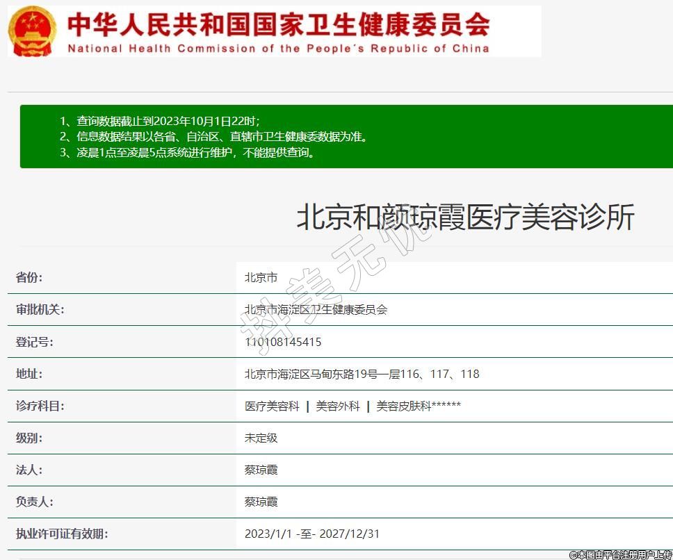 北京和顏瓊霞醫(yī)療美容診所,診療科目:醫(yī)療美容科 | 美容外科 | 美容皮膚科******