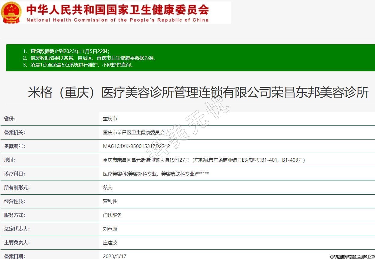 米格(重慶)醫(yī)療美容診所管理連鎖有限公司榮昌東邦美容診所
