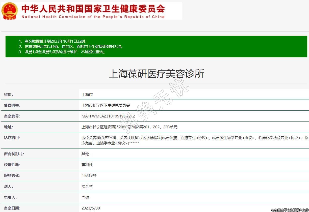 備案機關:上海市長寧區(qū)衛(wèi)生健康委員會