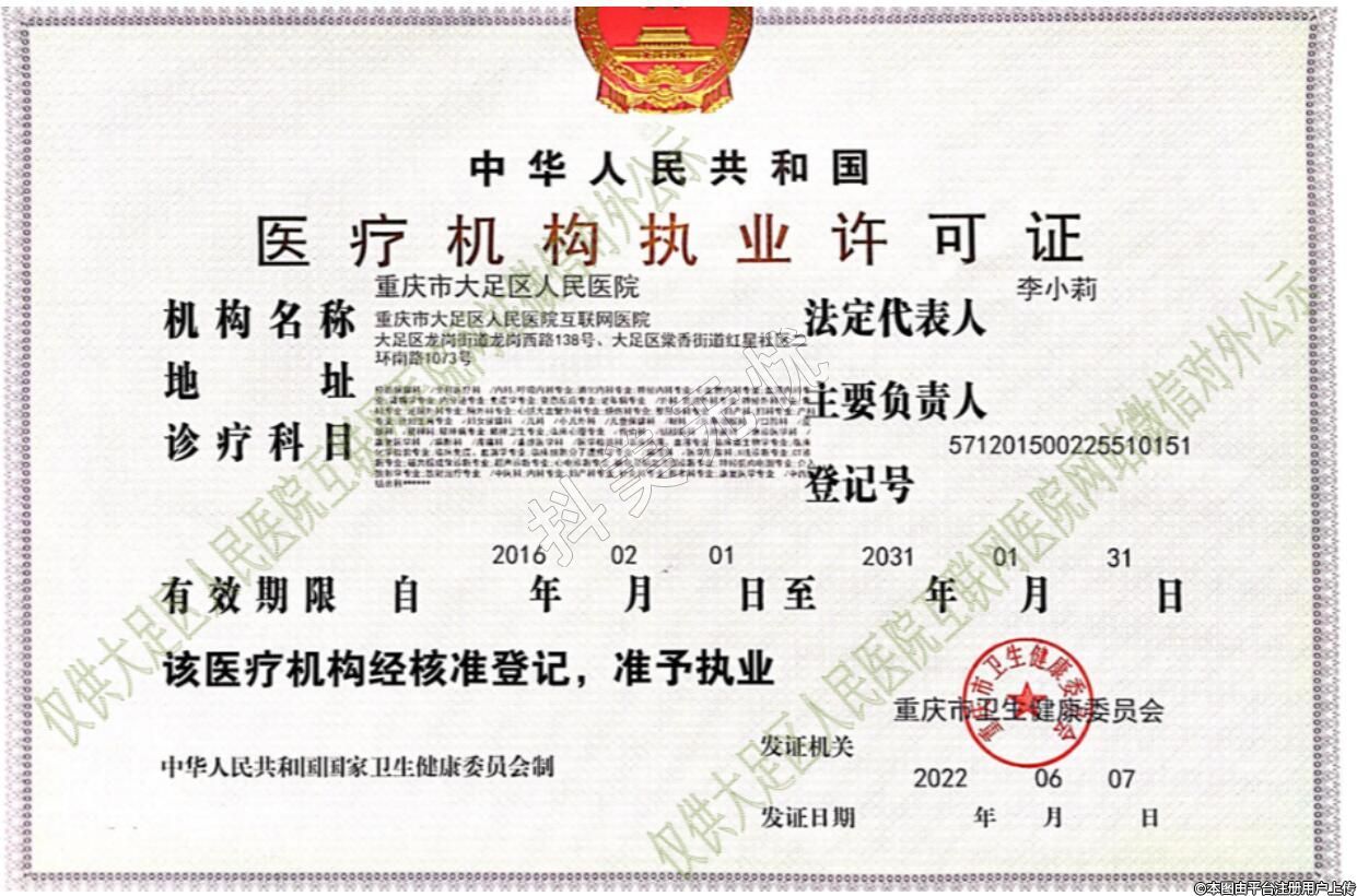 發(fā)證機關(guān):重慶市衛(wèi)生健康委員會