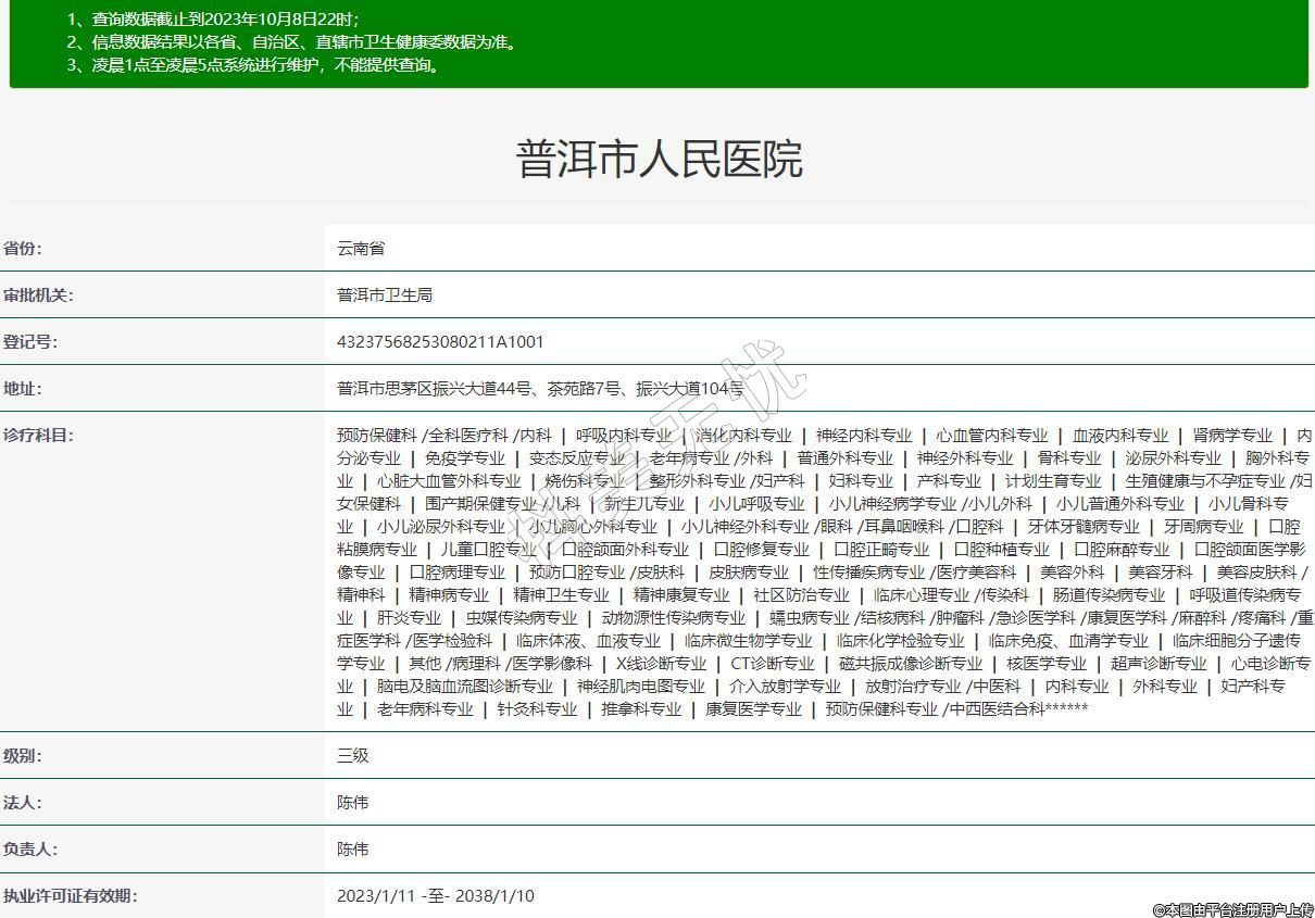 審批機(jī)關(guān):普洱市衛(wèi)生局