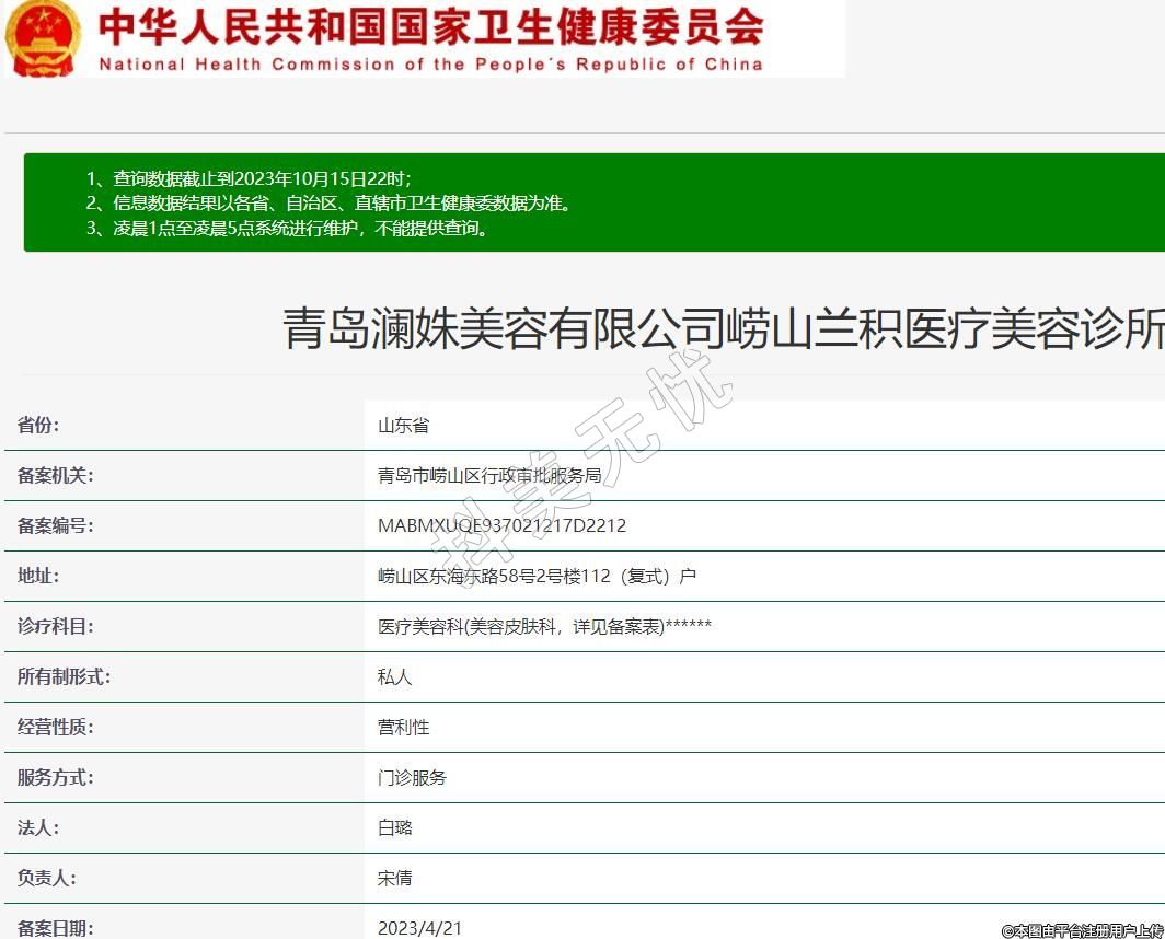 青島瀾姝美容有限公司嶗山蘭積醫(yī)療美容診所