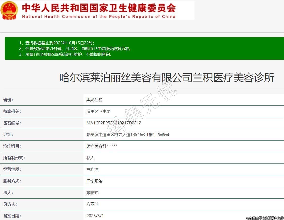 哈爾濱萊泊麗絲美容有限公司蘭積醫(yī)療美容診所