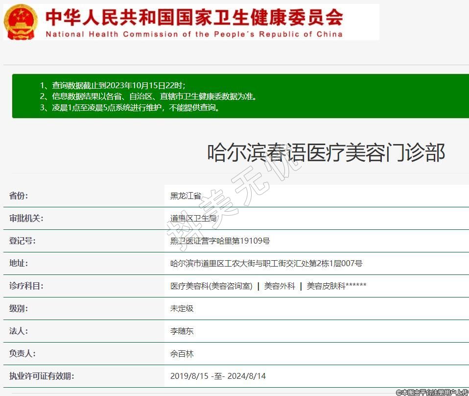 審批機關:道里區(qū)衛(wèi)生局