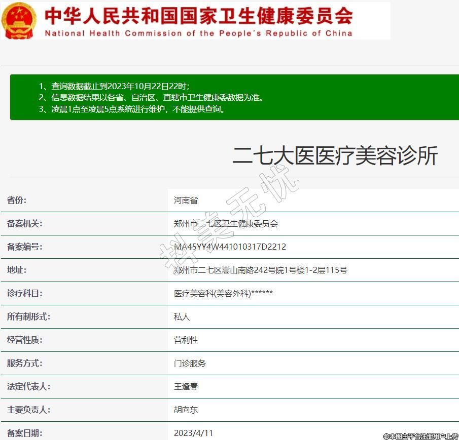 備案機關:鄭州市二七區(qū)衛(wèi)生健康委員會