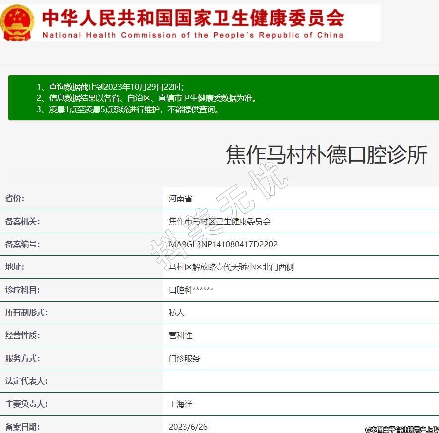 備案機(jī)關(guān):焦作市馬村區(qū)衛(wèi)生健康委員會(huì)