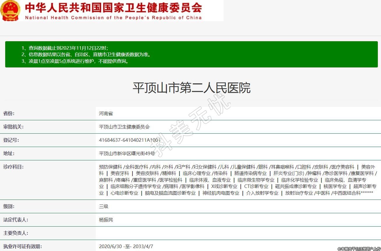 審批機關:平頂山市衛(wèi)生健康委員會