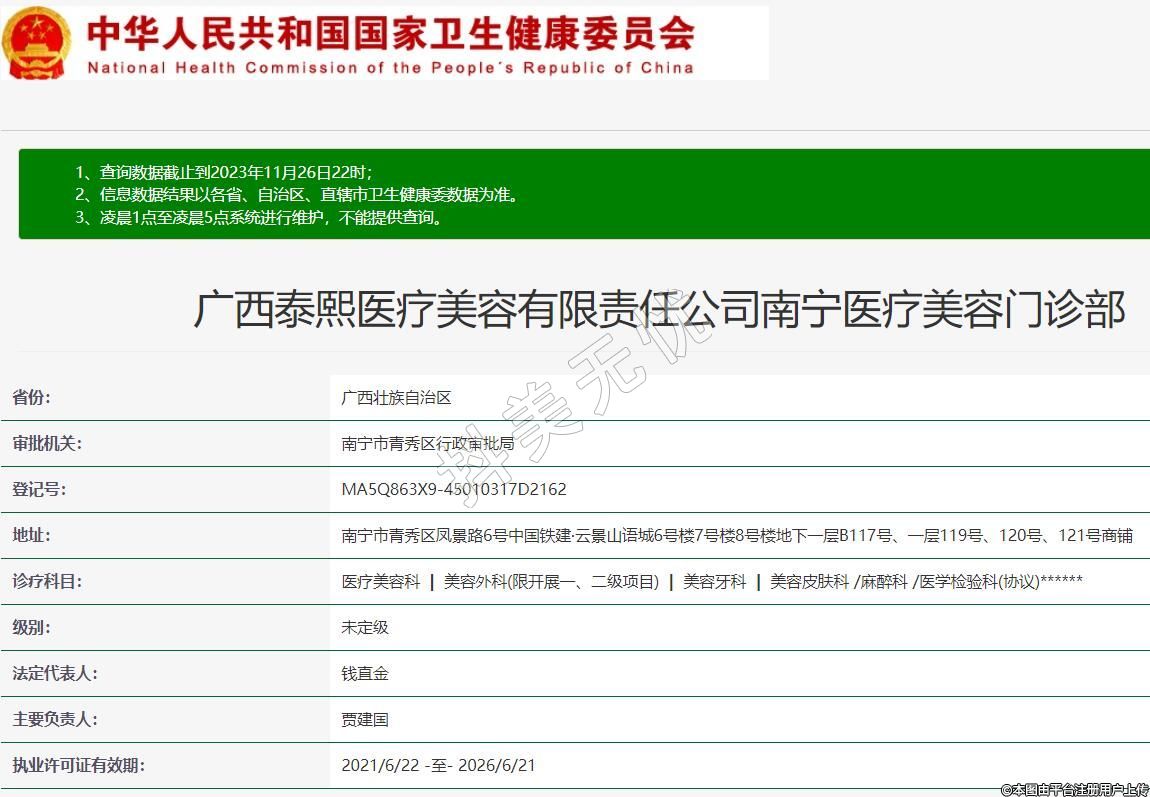 廣西泰熙醫(yī)療美容有限責(zé)任公司南寧醫(yī)療美容門診部