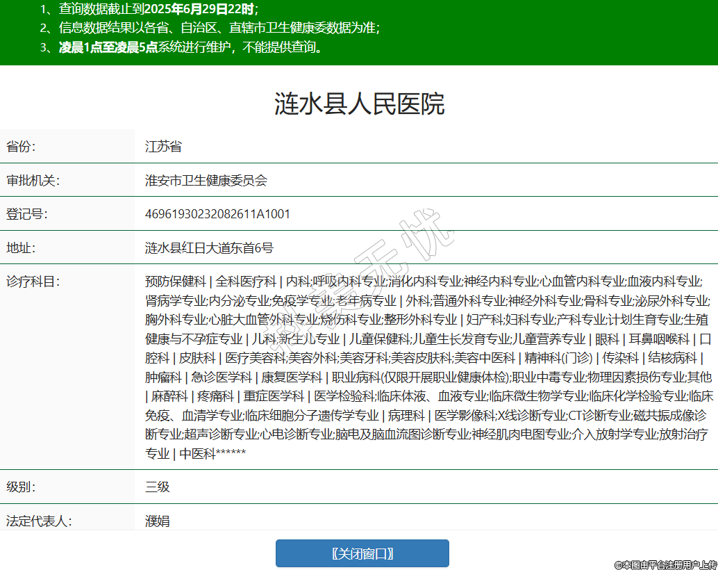 省份:江蘇省審批機(jī)關(guān):淮安市衛(wèi)生健康委員會登記號:46961930232082611A1001地址:漣水縣紅日大道東首6號診療科目:預(yù)防保健科 | 全科醫(yī)療科 | 內(nèi)科;呼吸內(nèi)科專業(yè);消化內(nèi)科專業(yè);神經(jīng)內(nèi)科專業(yè);心血管內(nèi)科專業(yè);血液內(nèi)科專業(yè);腎病學(xué)專業(yè);內(nèi)分泌專業(yè);免疫學(xué)專業(yè);老年病專業(yè) | 外科;普通外科專業(yè);神經(jīng)外科專業(yè);骨科專業(yè);泌尿外科專業(yè);胸外科專業(yè);心臟大血管外科專業(yè);燒傷科專業(yè);整形外科專業(yè) | 婦產(chǎn)科;婦科專業(yè);產(chǎn)科專業(yè);計(jì)劃生育專業(yè);生殖健康與不孕癥專業(yè) | 兒科;新生兒專業(yè) | 兒童保健科;兒童生長發(fā)育專業(yè);兒童營養(yǎng)專業(yè) | 眼科 | 耳鼻咽喉科 | 口腔科 | 皮膚科 | 醫(yī)療美容科;美容外科;美容牙科;美容皮膚科;美容中醫(yī)科 | 精神科(門診) | 傳染科 | 結(jié)核病科 | 腫瘤科 | 急診醫(yī)學(xué)科 | 康復(fù)醫(yī)學(xué)科 | 職業(yè)病科(僅限開展職業(yè)健康體檢);職業(yè)中毒專業(yè);物理因素?fù)p傷專業(yè);其他 | 麻醉科 | 疼痛科 | 重癥醫(yī)學(xué)科 | 醫(yī)學(xué)檢驗(yàn)科;臨床體液、血液專業(yè);臨床微生物學(xué)專業(yè);臨床化學(xué)檢驗(yàn)專業(yè);臨床免疫、血清學(xué)專業(yè);臨床細(xì)胞分子遺傳學(xué)專業(yè) | 病理科 | 醫(yī)學(xué)影像科;X線診斷專業(yè);CT診斷專業(yè);磁共振成像診斷專業(yè);超聲診斷專業(yè);心電診斷專業(yè);腦電及腦血流圖診斷專業(yè);神經(jīng)肌肉電圖專業(yè);介入放射學(xué)專業(yè);放射治療專業(yè) | 中醫(yī)科******級別:三級法定代表人:濮娟主要負(fù)責(zé)人:濮娟執(zhí)業(yè)許可證有效期:2024/09/12 -至- 2035/08/11 -
