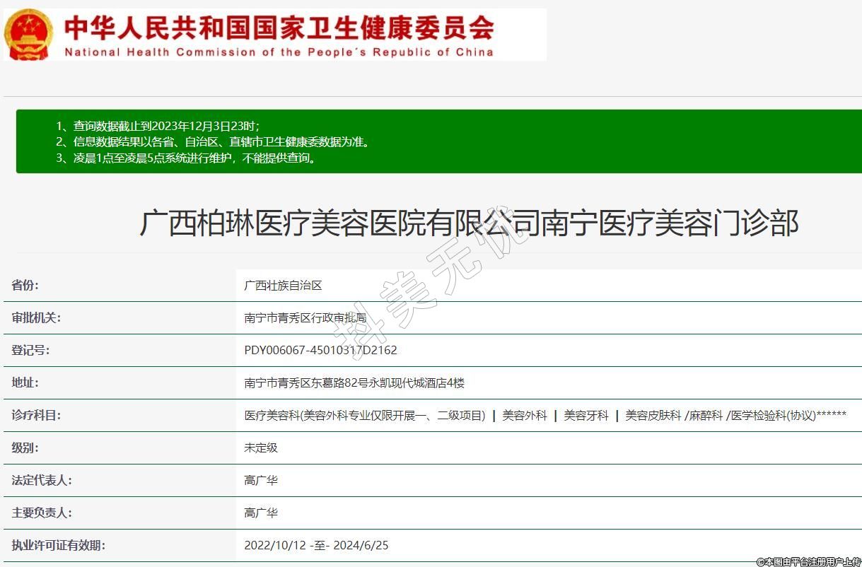 廣西柏琳醫(yī)療美容醫(yī)院有限公司南寧醫(yī)療美容門診部