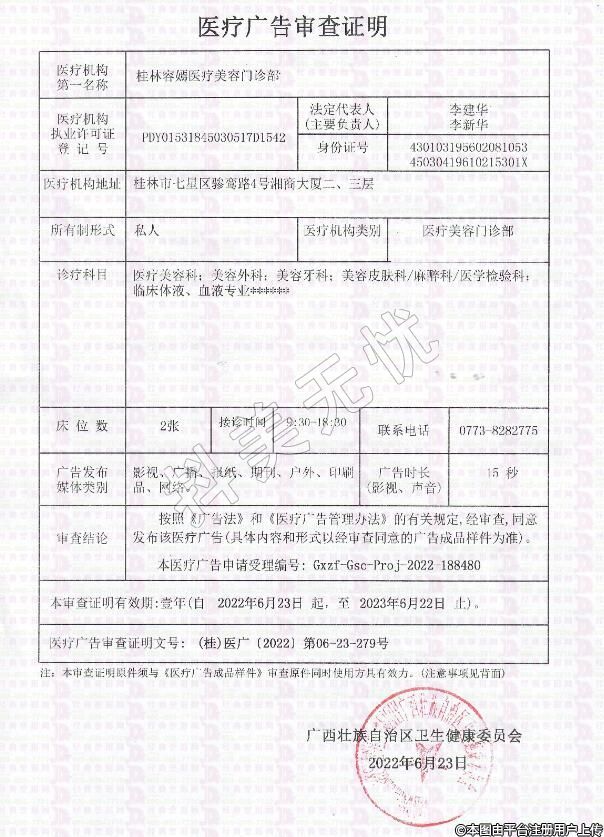 機構(gòu)名稱:桂林容嫣醫(yī)療美容門診部