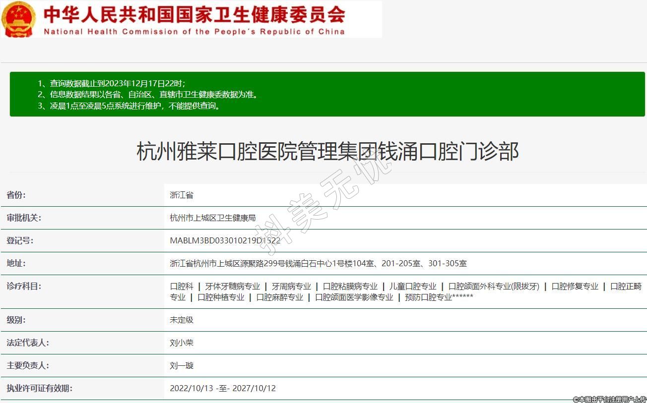 杭州雅萊口腔醫(yī)院管理集團(tuán)錢涌口腔門診部