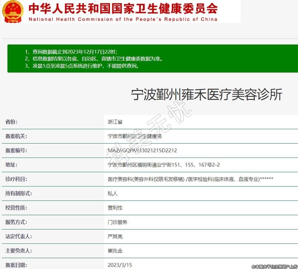 備案機關:寧波市鄞州區(qū)衛(wèi)生健康局