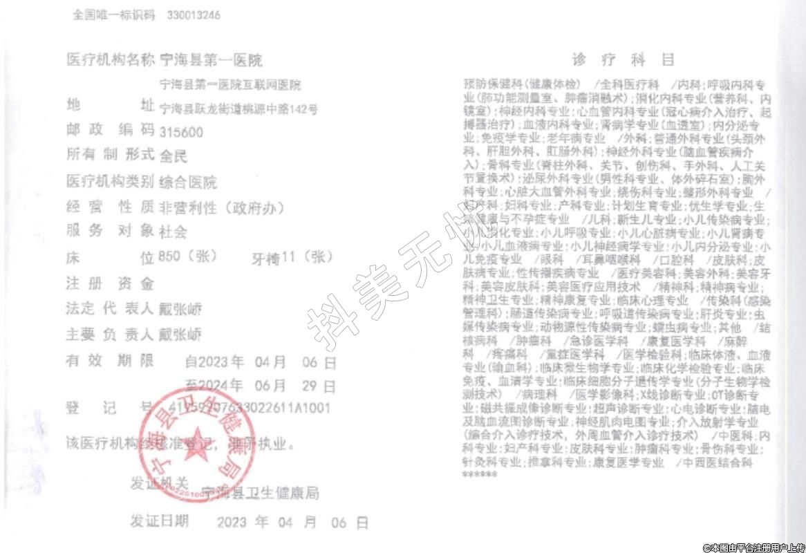 發(fā)證機關(guān):寧海縣衛(wèi)生健康局