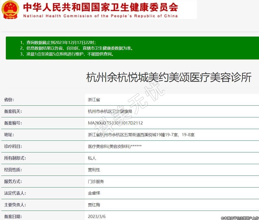 備案機關:杭州市余杭區(qū)衛(wèi)生健康局