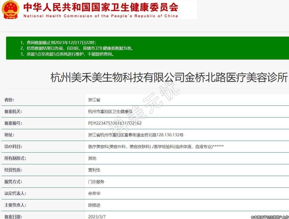 杭州美禾美生物科技有限公司金橋北路醫(yī)療美容診所