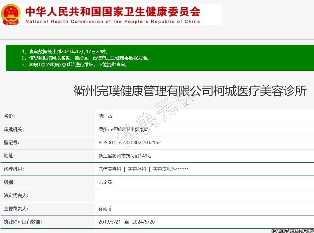 衢州完璞健康管理有限公司柯城醫(yī)療美容診所
