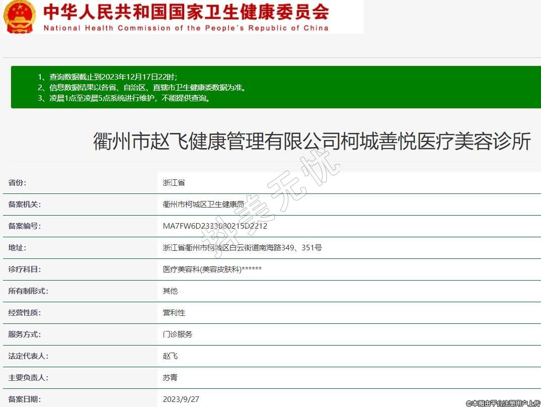 衢州市趙飛健康管理有限公司柯城善悅醫(yī)療美容診所