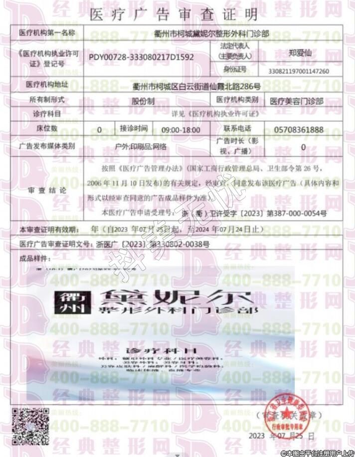 機(jī)構(gòu)名稱:衢州市柯城黛妮爾整形外科門診部