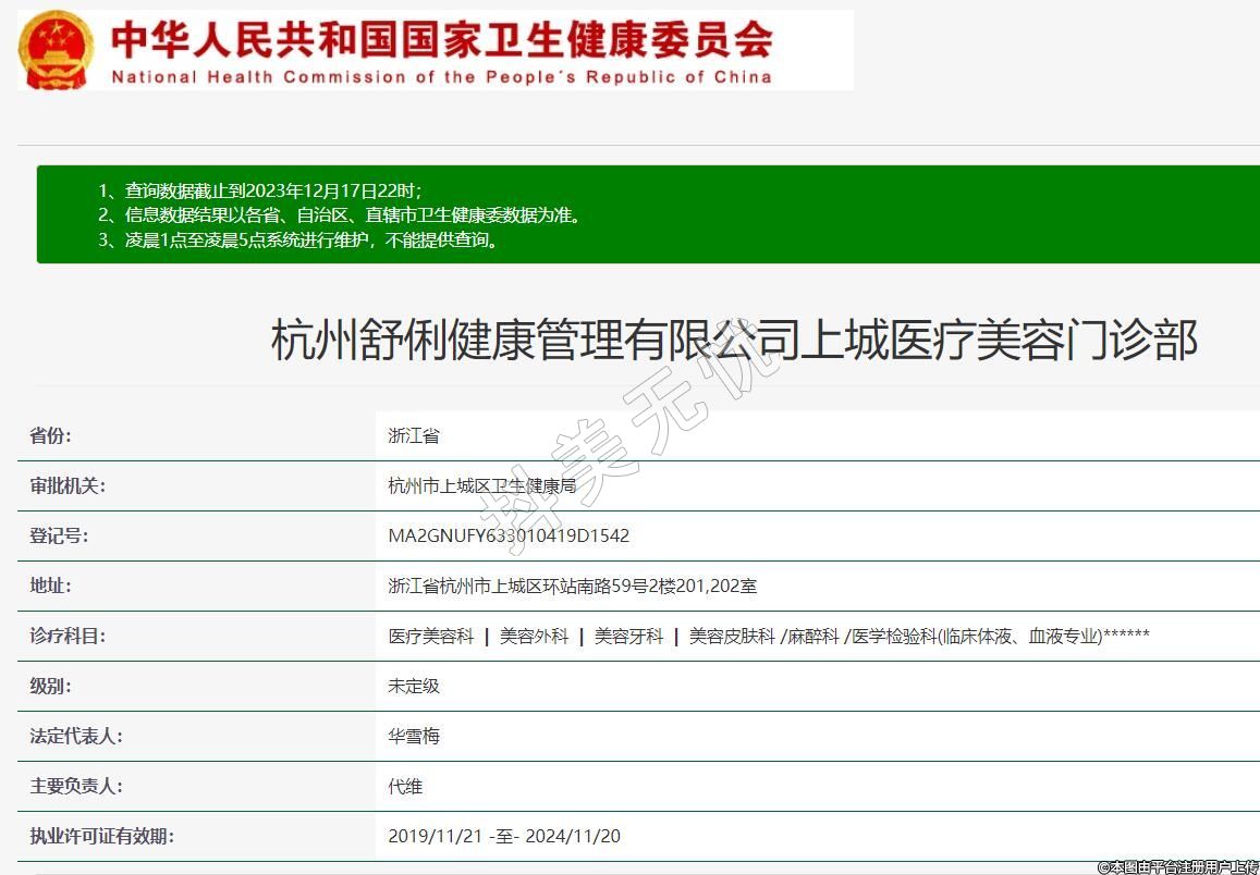 杭州舒俐健康管理有限公司上城醫(yī)療美容門診部