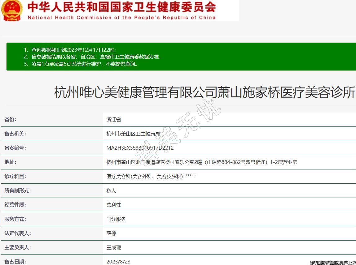 杭州唯心美健康管理有限公司蕭山施家橋醫(yī)療美容診所