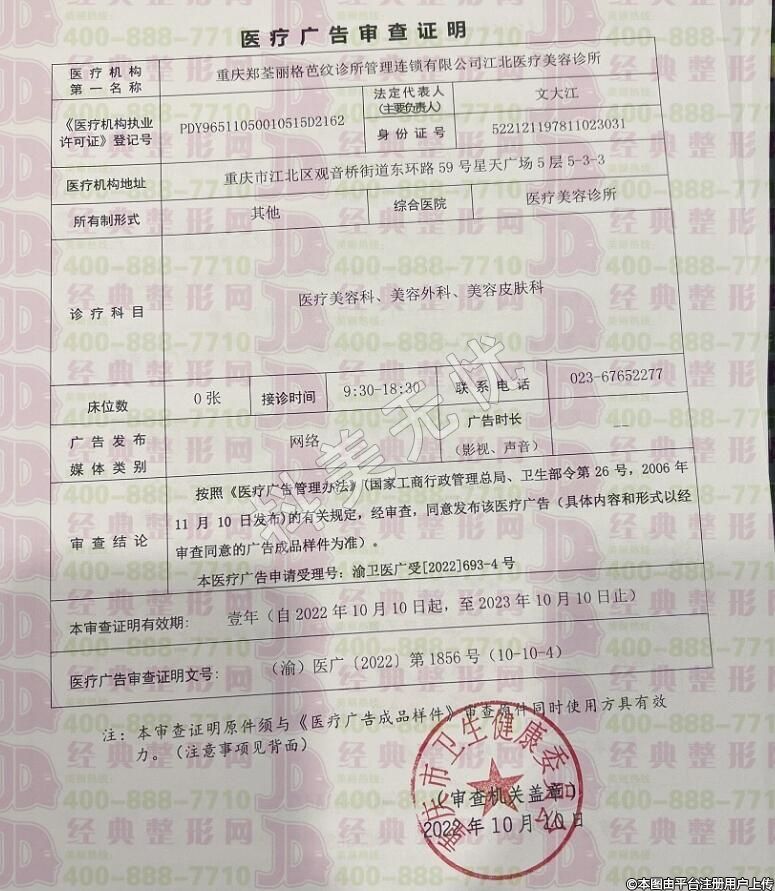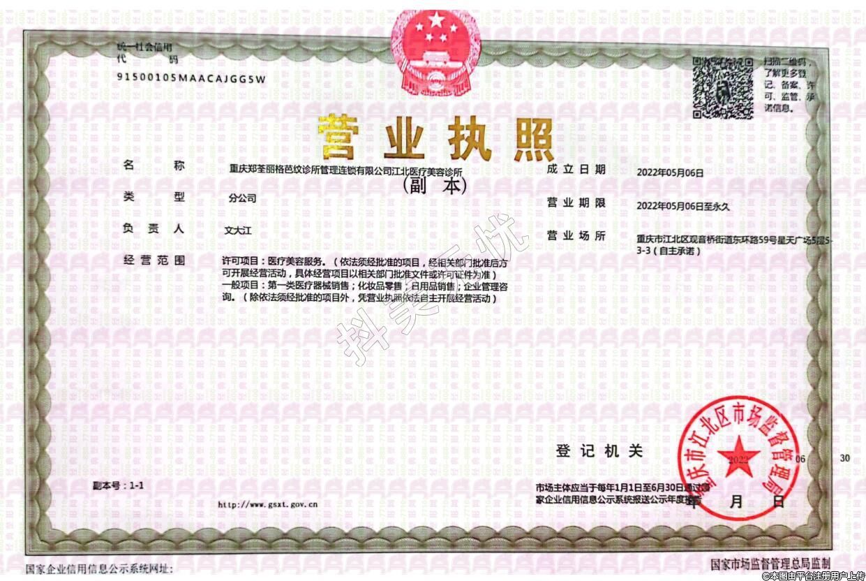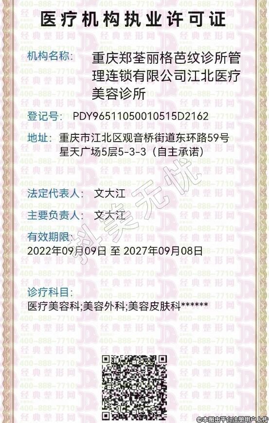 機(jī)構(gòu)名稱(chēng):重慶鄭荃麗格芭紋診所管理連鎖有限公司江北醫(yī)療美容診所