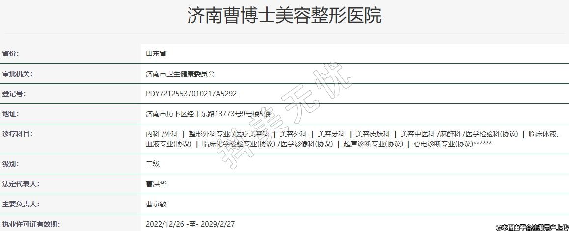 診療科目:內(nèi)科 /外科 | 整形外科專(zhuān)業(yè) /醫(yī)療美容科 | 美容外科 | 美容牙科 | 美容皮膚科 | 美容中醫(yī)科 /麻醉科 /醫(yī)學(xué)檢驗(yàn)科(協(xié)議) | 臨床體液、血液專(zhuān)業(yè)(協(xié)議) | 臨床化學(xué)檢驗(yàn)專(zhuān)業(yè)(協(xié)議) /醫(yī)學(xué)影像科(協(xié)議) | 超聲診斷專(zhuān)業(yè)(協(xié)議) | 心電診斷專(zhuān)業(yè)(協(xié)議)******