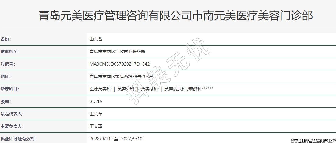 青島元美醫(yī)療管理咨詢有限公司市南元美醫(yī)療美容門(mén)診部