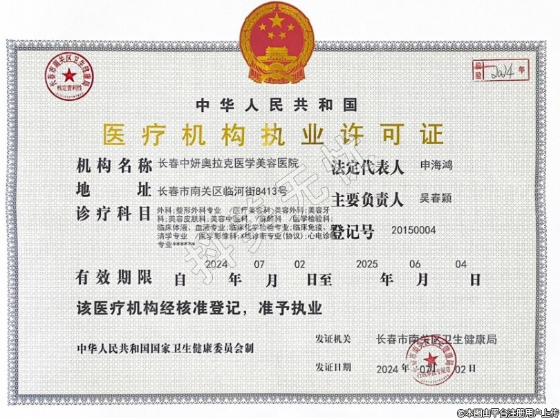 機構(gòu)名稱:長春中妍奧拉克醫(yī)學(xué)美容醫(yī)院