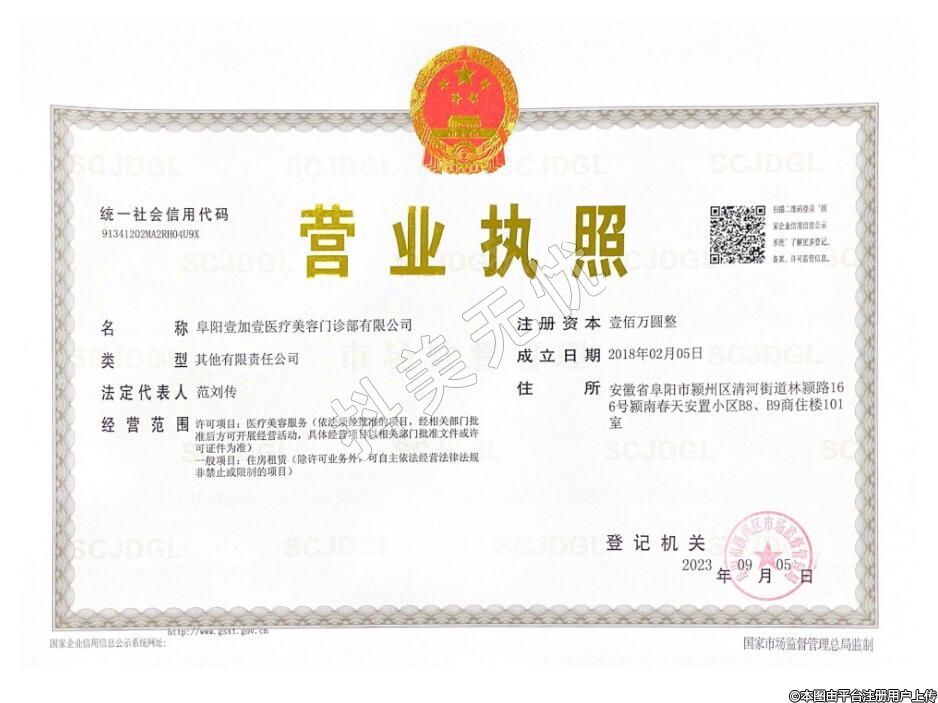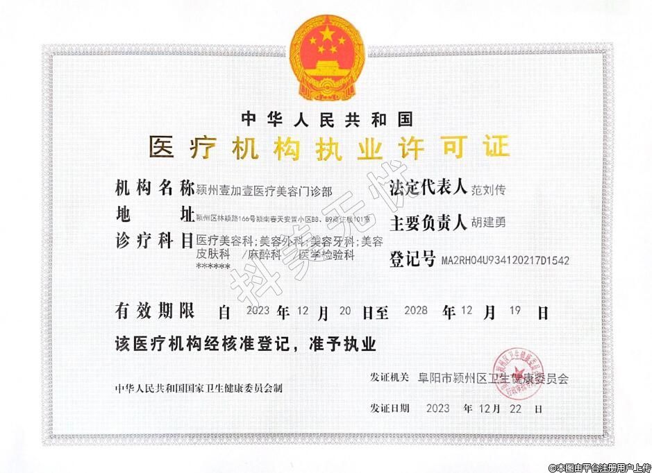 機(jī)構(gòu)名稱:潁州壹加壹醫(yī)療美容門診部