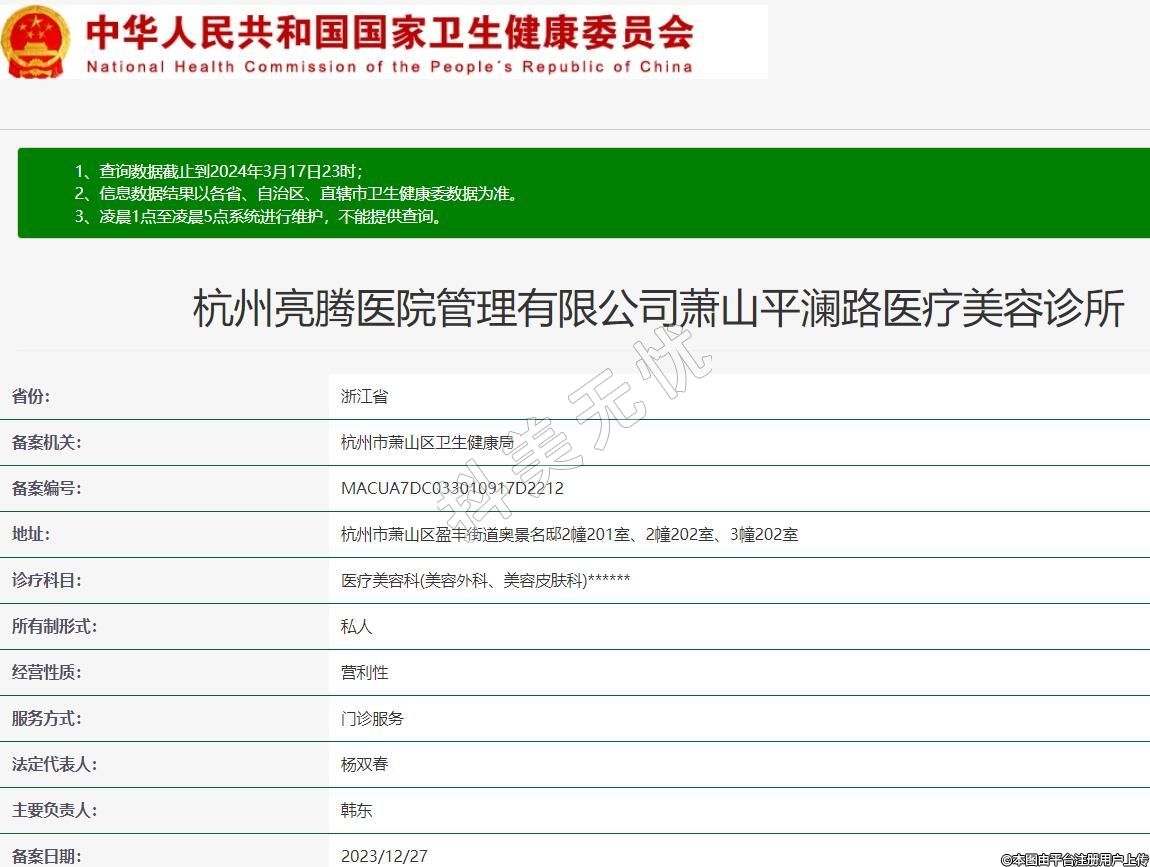 杭州亮騰醫(yī)院管理有限公司蕭山平瀾路醫(yī)療美容診所