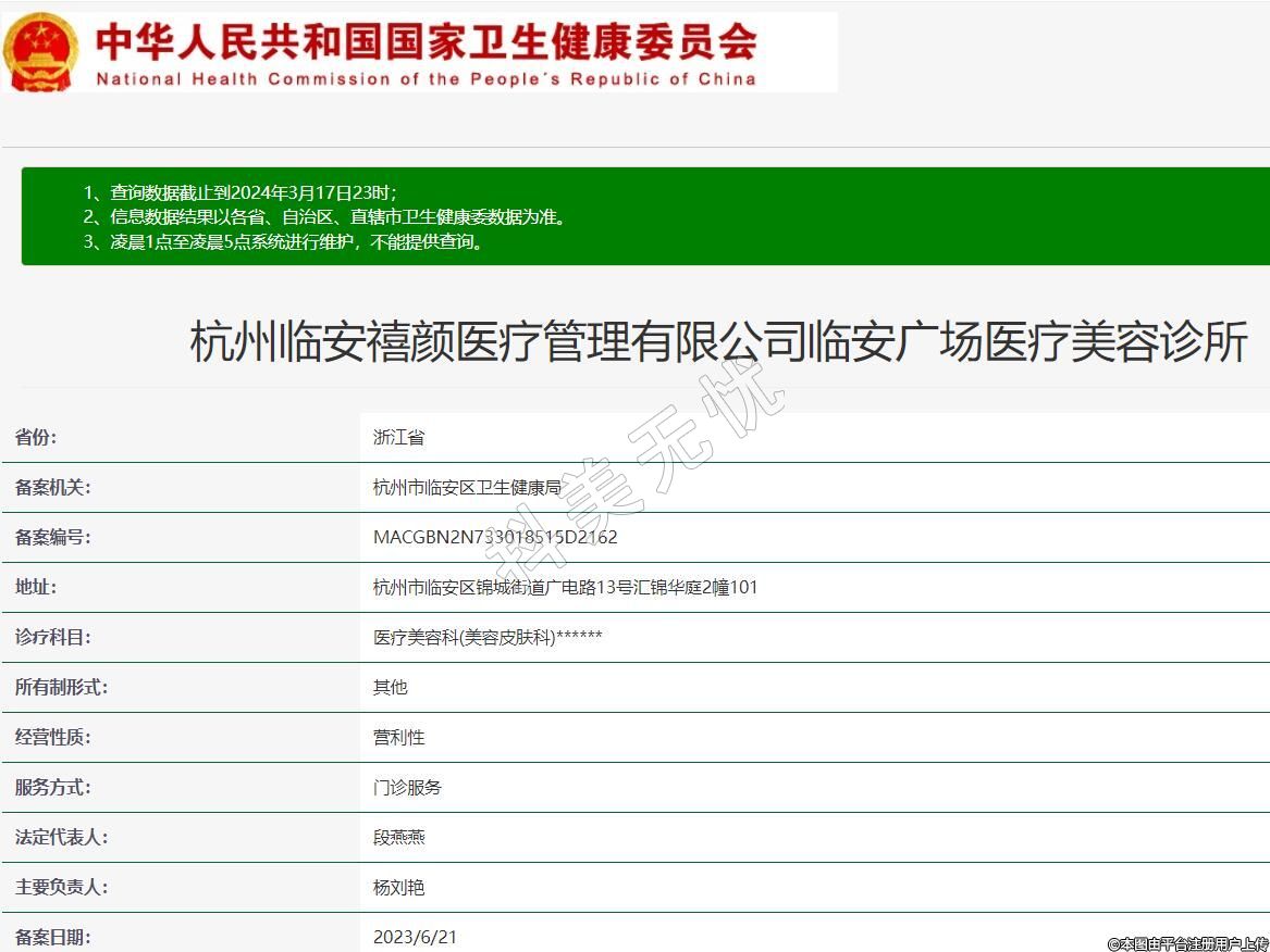 杭州臨安禧顏醫(yī)療管理有限公司臨安廣場醫(yī)療美容診所