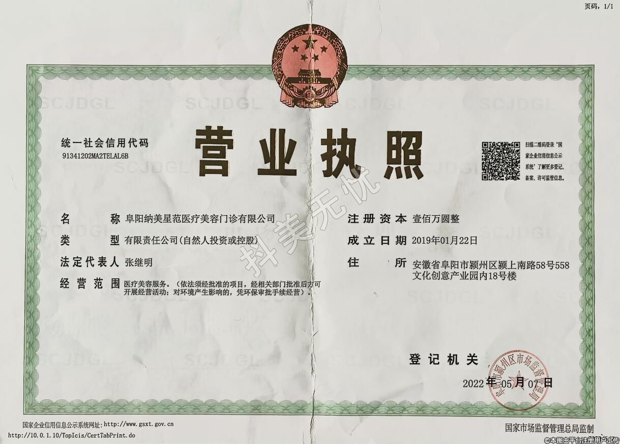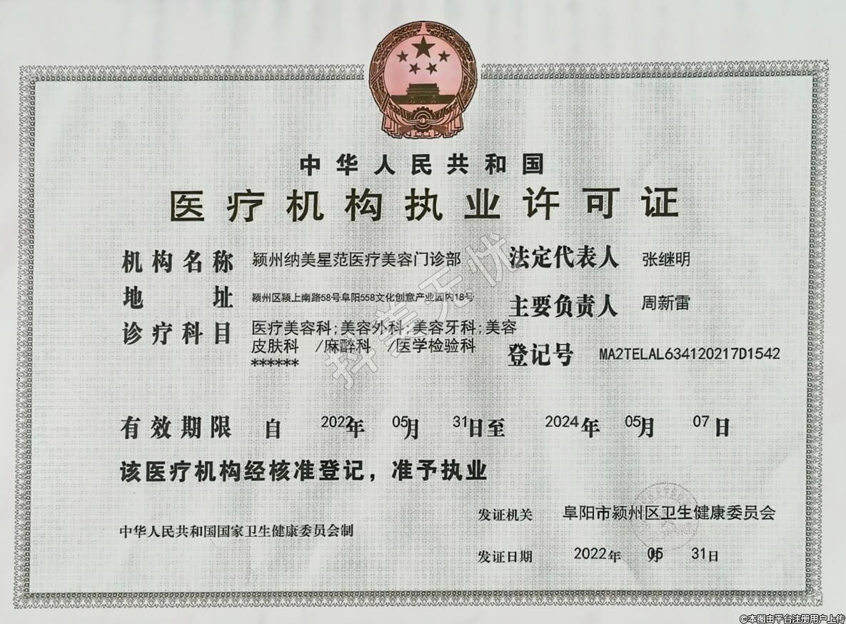 機(jī)構(gòu)名稱:潁州納美星范醫(yī)療美容門診部