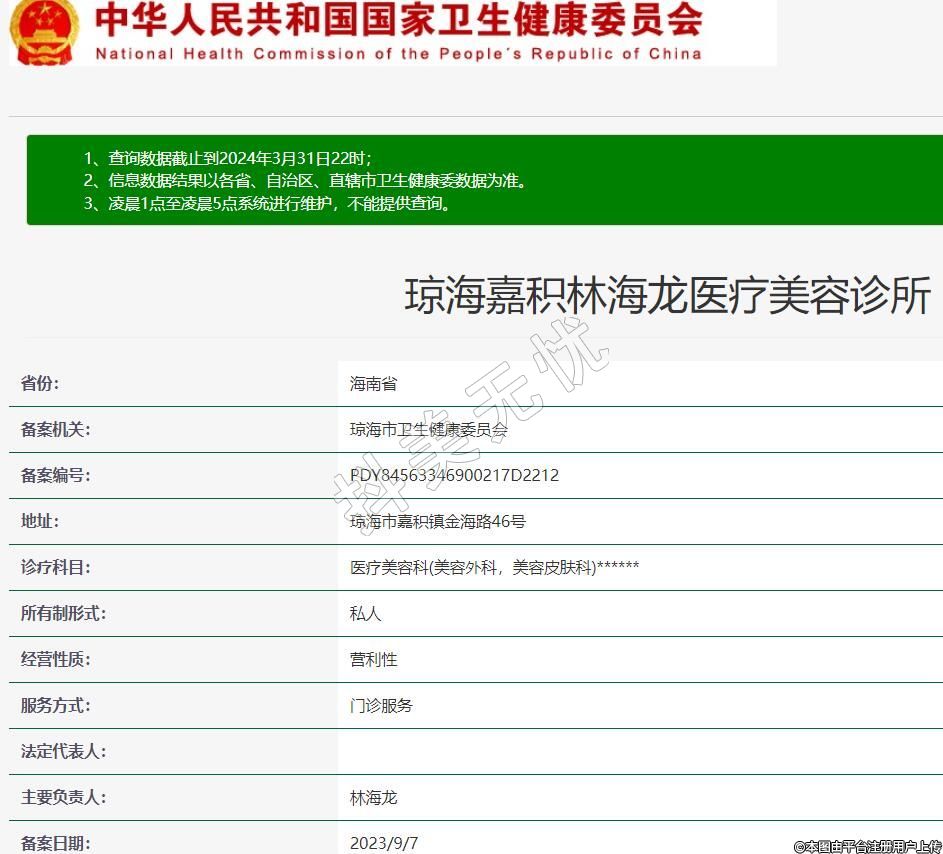 瓊海嘉積林海龍醫(yī)療美容診所,診療科目:醫(yī)療美容科(美容外科,美容皮膚科)******