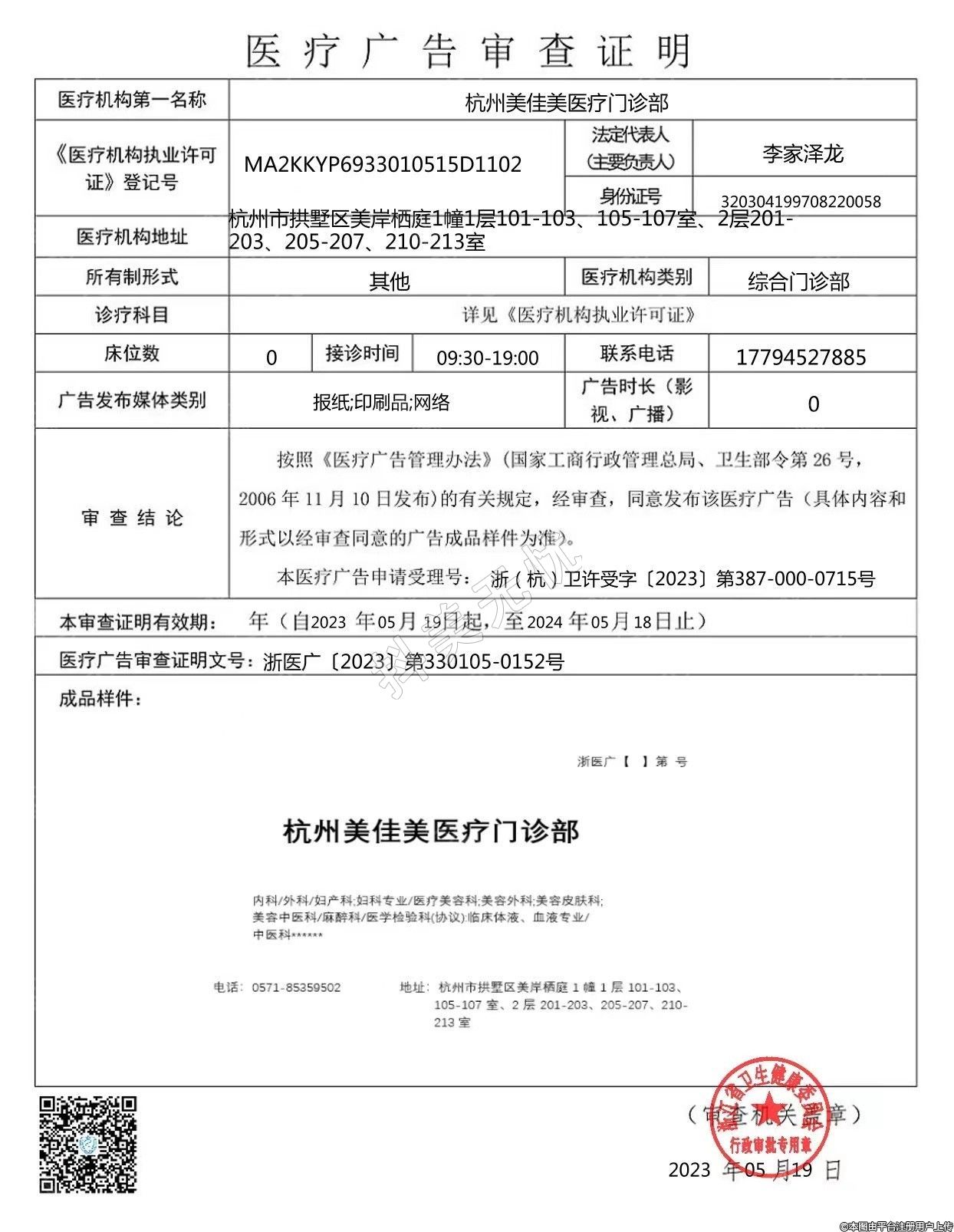 機(jī)構(gòu)名稱:杭州美佳美醫(yī)療門診部