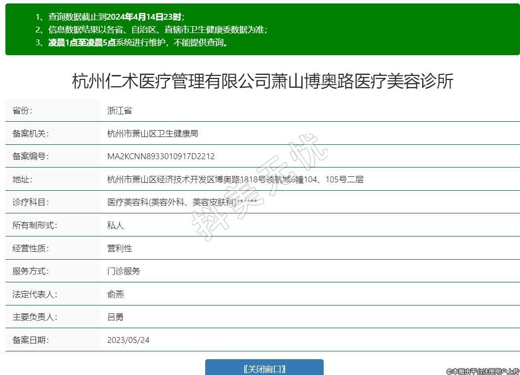 杭州仁術(shù)醫(yī)療管理有限公司蕭山博奧路醫(yī)療美容診所